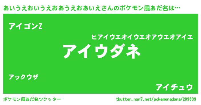 | 女子向けラノベタイトル風あだ名 | 『あいうえおいうえおあうえおあいえの雑貨屋さん』 |