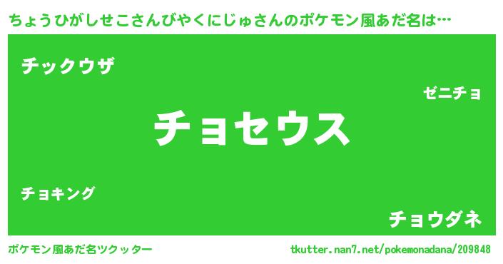 | 女子向けラノベタイトル風あだ名 | 『ちょうひがしせこさんびやくにじゅなんてお断りですっ。』 |