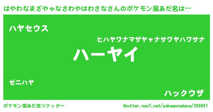 | 意味不明あだ名 | 『住所不定無職はやわなまざやゃなさわやはわさな(9歳)』 |