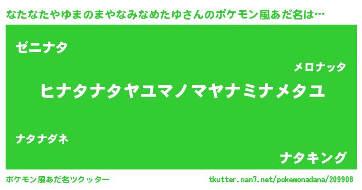 | 女子向けラノベタイトル風あだ名 | 『なたなたやゆまのまやなみなめたゆは平凡を望む』 |