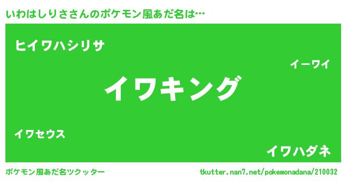 | 男性向けラノベタイトル風あだ名 | 『イワハシリサスレイヤー』 |