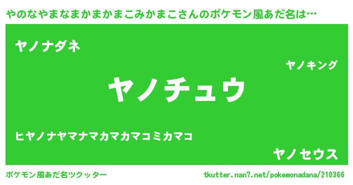 | 男性向けラノベタイトル風あだ名 | 『ヤノナヤマナマカマカマコミカマコアートオンライン』 |