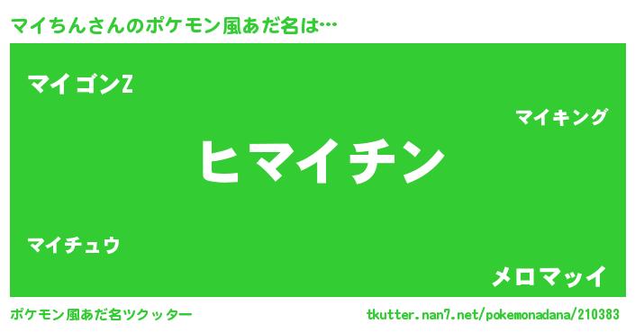 | 女子向けラノベタイトル風あだ名 | 『マイちんの卵を拾いまして』 |