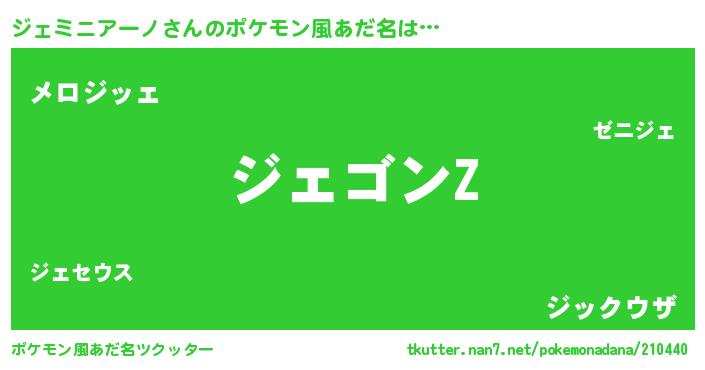 | 男性向けラノベタイトル風あだ名 | 『ジェミニアーノに滅ぼされるだけの簡単なお仕事です』 |