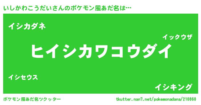 | 男性向けラノベタイトル風あだ名 | 『いしかわこうだいの嫁は女の子じゃないと思った?』 |