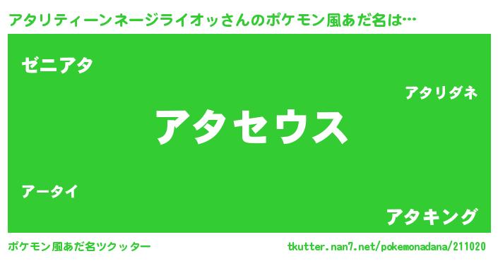 | 女子向けラノベタイトル風あだ名 | 『アタリティーンネージライオッアンティーク』 |