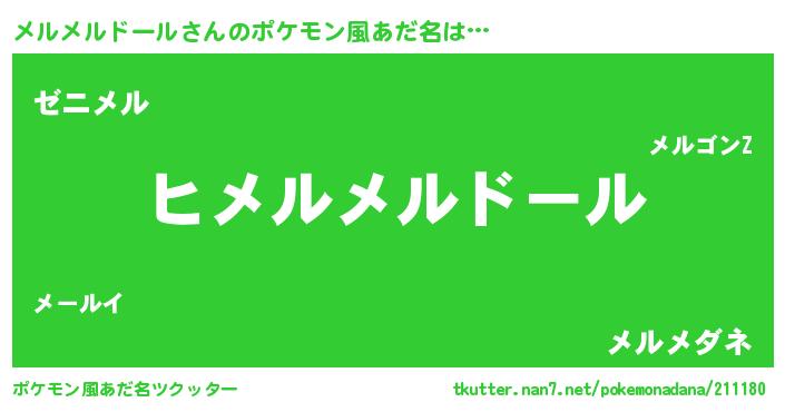 | 意味不明あだ名 | 『とにかく怪しいメルメルドール』 |