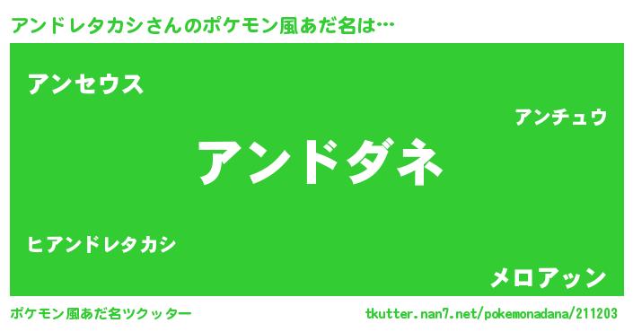 | ファンタジー風あだ名 | 『エターナルアンドレタカシー』 |