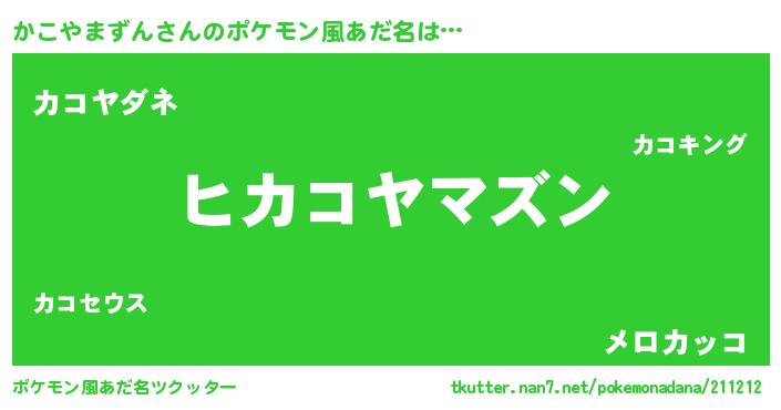 | 女子向けラノベタイトル風あだ名 | 『かこやまずんの卵を拾いまして』 |