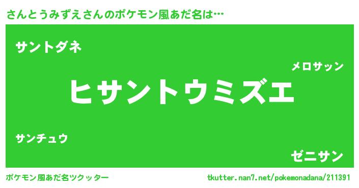 | 男性向けラノベタイトル風あだ名 | 『さんとうみずえの嫁は女の子じゃないと思った?』 |