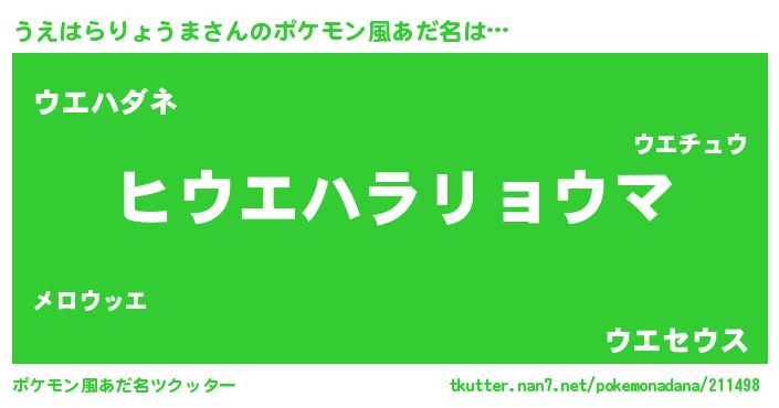 | 女子向けラノベタイトル風あだ名 | 『うえはらりょうまの卵を拾いまして』 |