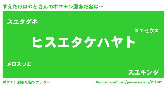 | 男性向けラノベタイトル風あだ名 | 『すえたけはやとの嫁は女の子じゃないと思った?』 |