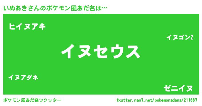 | 男性向けラノベタイトル風あだ名 | 『Re:いぬあきから始める異世界生活』 |