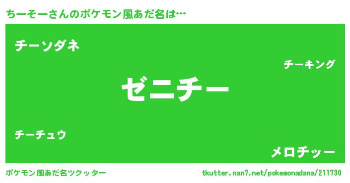 | 男性向けラノベタイトル風あだ名 | 『ちーそーという概念が存在しない退屈な世界 』 |