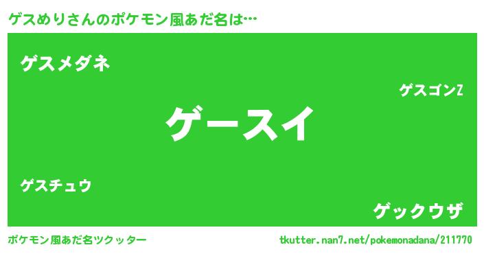| ヒーロー風カッコイイあだ名 | 『仮面ゲスダー』『ウルトラゲスめりマン』 |
