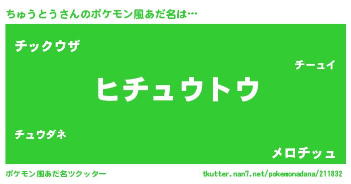 | ヒーロー風カッコイイあだ名 | 『炎刃騎士チュ』『慈愛の使者ちゅうとう』 |
