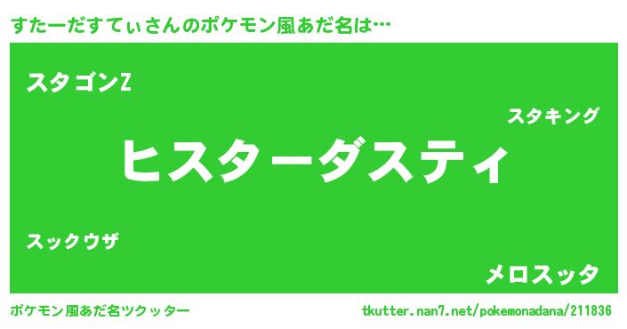| 胡散臭い通販商品みたいなあだ名 | 『信頼と実績のサプリメント…その名も「すたーだすてぃ」』 |