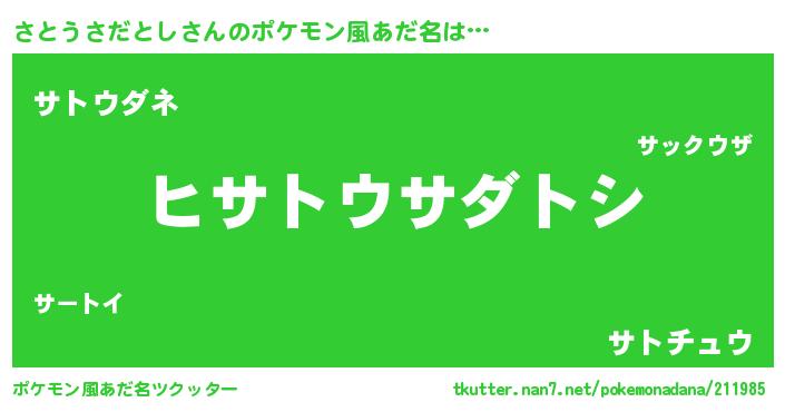 | 意味不明あだ名 | 『とにかく怪しいさとうさだとし』 |