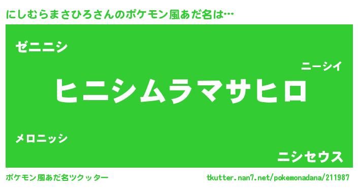 | 意味不明あだ名 | 『とにかく怪しいにしむらまさひろ』 |
