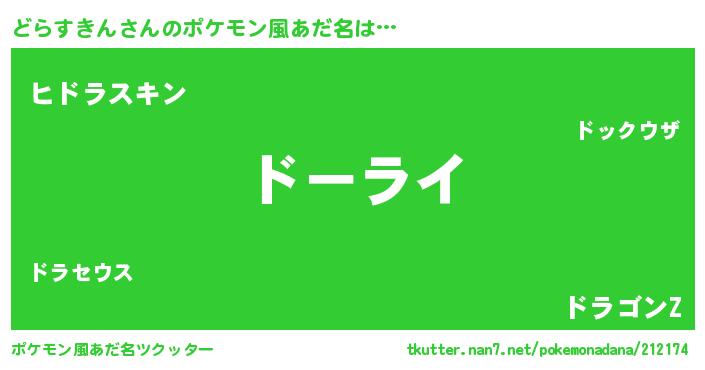 | 意味不明あだ名 | 『住所不定無職どらすきん(91歳)』 |
