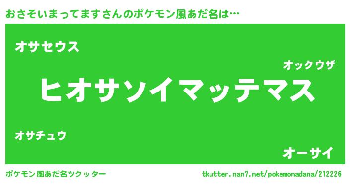| 女子向けラノベタイトル風あだ名 | 『おさそいまってます様がみてる』 |