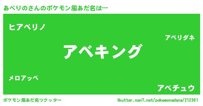 | 男性向けラノベタイトル風あだ名 | 『転生したらあべりのだった件』 |