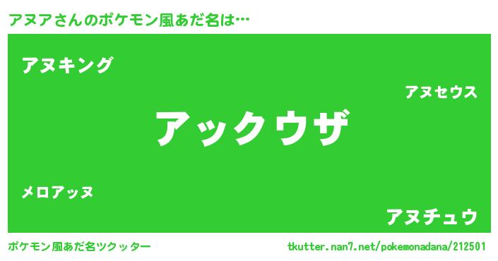 | ヒーロー風カッコイイあだ名 | 『正義の使者アヌア』『スーパーアヌア』 |