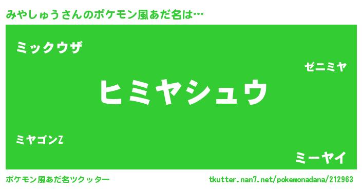 | 意味不明あだ名 | 『とにかく怪しいみやしゅう』 |
