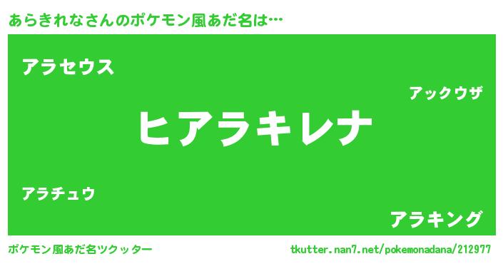 | 意味不明あだ名 | 『とにかく怪しいあらきれな』 |