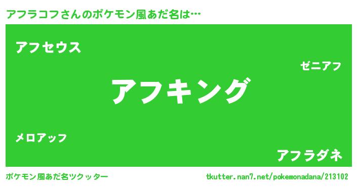 | 男性向けラノベタイトル風あだ名 | 『アフラコフ~年齢イコール彼女いない歴の魔法使い~』 |