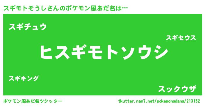 | 男性向けラノベタイトル風あだ名 | 『スギモトそうしの嫁は女の子じゃないと思った?』 |