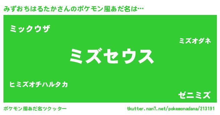| 男性向けラノベタイトル風あだ名 | 『Re:みずおちはるたかから始める異世界生活』 |