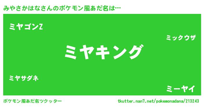 | 男性向けラノベタイトル風あだ名 | 『みやさかはな~年齢イコール彼女いない歴の魔法使い~』 |