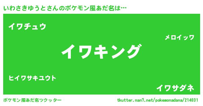| 男性向けラノベタイトル風あだ名 | 『いわさきゆうと~年齢イコール彼女いない歴の魔法使い~』 |