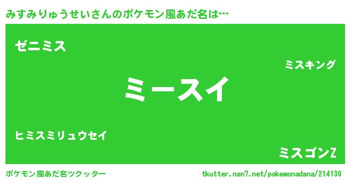 | 意味不明あだ名 | 『住所不定無職みすみりゅうせい(39歳)』 |