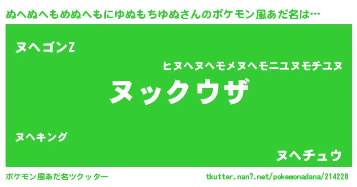 | 男性向けラノベタイトル風あだ名 | 『おまえをオタクにしてやるから、俺をぬへぬへもめぬへもにゆぬもちゆぬにしてくれ! 』 |