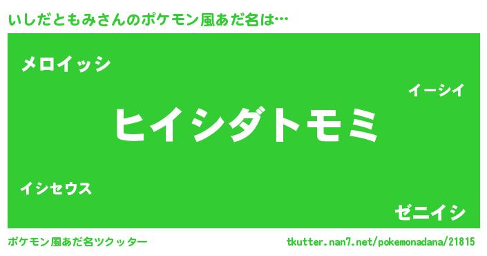 | ヘコむあだ名 | 『いしっちょ』『いしだともみ(笑)』 |