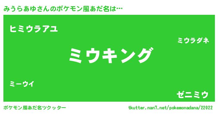 | 女子向けラノベタイトル風あだ名 | 『みうらあゆの玉の輿計画!』 |