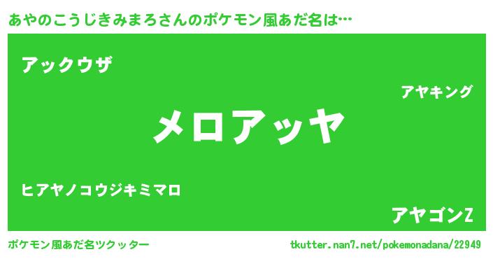 | 男性向けラノベタイトル風あだ名 | 『うちのあやのこうじきみまろが世界を掌握している!』 |