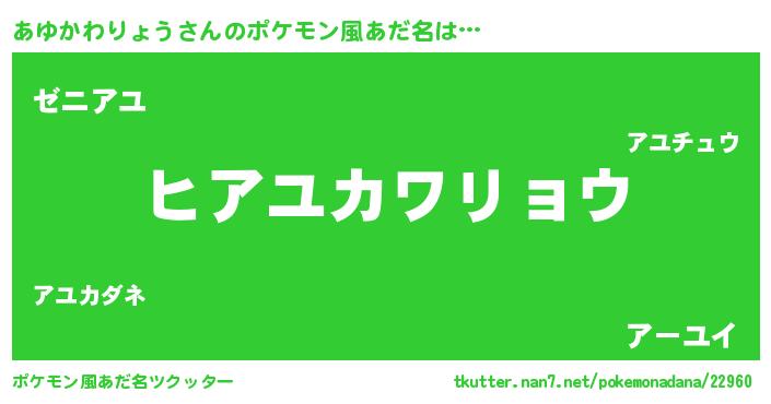 | 女子向けラノベタイトル風あだ名 | 『あゆかわりょうの卵を拾いまして』 |