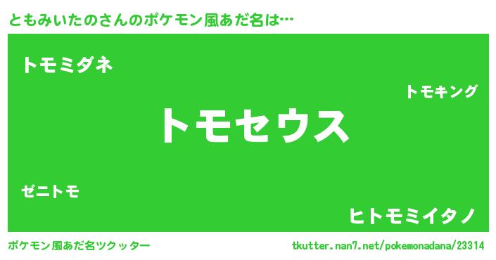 | 男性向けラノベタイトル風あだ名 | 『Re:ともみいたのから始める異世界生活』 |