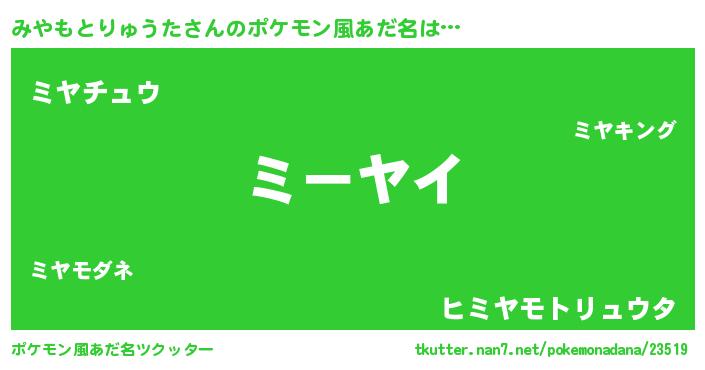 | 男性向けラノベタイトル風あだ名 | 『魔弾の王とみやもとりゅうた』 |