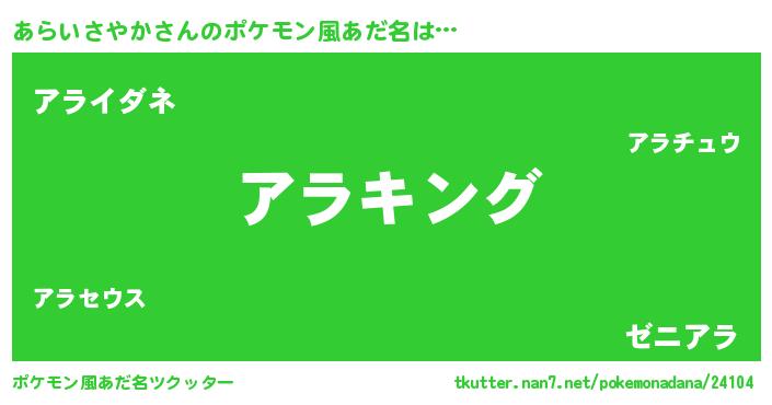 | 男性向けラノベタイトル風あだ名 | 『あらいさやか~年齢イコール彼女いない歴の魔法使い~』 |