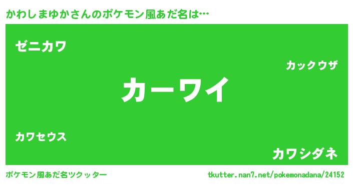 | 男性向けラノベタイトル風あだ名 | 『この素晴らしい世界にかわしまゆかを!』 |