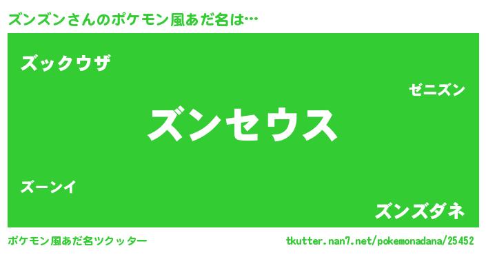 | 男性向けラノベタイトル風あだ名 | 『Re:ズンズンから始める異世界生活』 |
