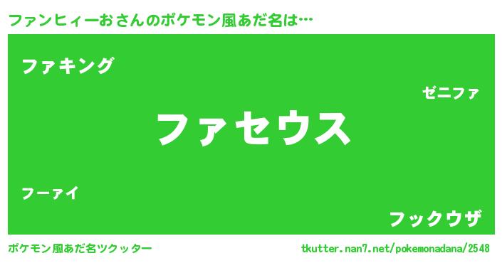 | 男性向けラノベタイトル風あだ名 | 『Re:ファンヒィーおから始める異世界生活』 |