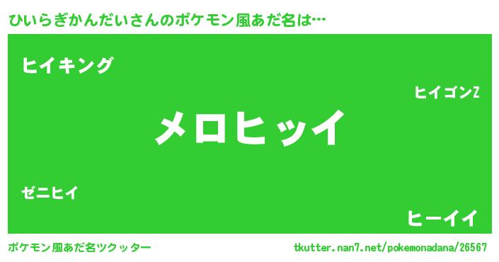 | ヒーロー風カッコイイあだ名 | 『仮面ヒイダー』『ネオヒイラギカンダイ』 |
