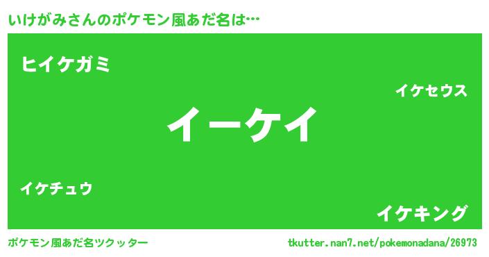 | 男性向けラノベタイトル風あだ名 | 『魔弾の王といけがみ』『いけがみの憂鬱』 |