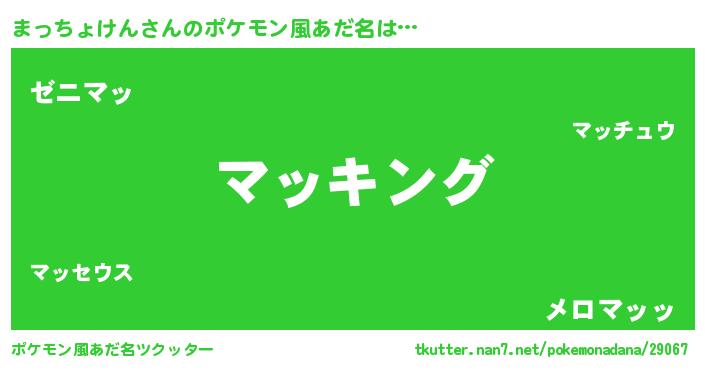 | 男性向けラノベタイトル風あだ名 | 『転生したらまっちょけんだった件』 |