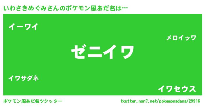 | ヘコむあだ名 | 『いわさきめぐみ(小並感)』『酢こんぶ』 |